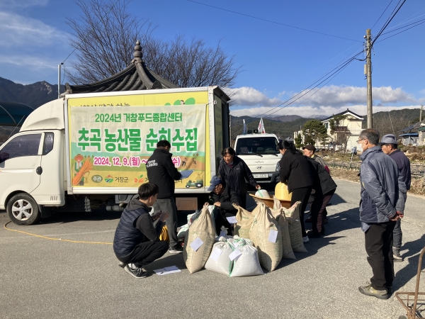 [아시아월드뉴스] 거창푸드종합센터는 지난 12월 9일부터 11일까지 3일간 7개 면 12개 마을에서 추곡 농산물 순회수집을 진행하며 약 3,000kg의 13종 농산물을 수매했다고 밝혔다.