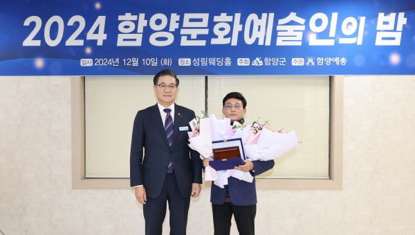 이날 군수 표창에는 함양연예예술인협회 김정만 회장, 함양문화예술인상에는 홍차순, 한영자, 강동화, 이율희, 정진용, 이희권, 정유근 총 8명이 수상했다.