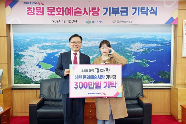 [아시아월드뉴스] 창원특례시는 12일 트로트 요정 김다현이 지역 문화 예술진흥을 위해 써달라며 300만원을 기탁했다고 밝혔다.