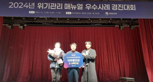 [아시아월드뉴스] 강원특별자치도는 12월 12일 행정안전부가 주최한 ‘2024년 위기관리 매뉴얼 우수사례 경진대회’에서 ‘산불 재난 현장조치 행동매뉴얼’ 로 ‘국무총리상’을 수상했다고 밝혔다.