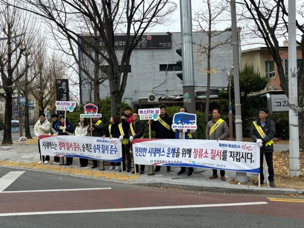 특히 이날 캠페인에서는 내년 본격 시행되는 ‘75세 이상 어르신 시내버스 요금 전면 무료화’로 어르신들의 대중교통 이용 증가가 예상되는 가운데 안전사고 없는 시내버스 이용을 위해 운수종사자와 시민들의 각별한 주의를 당부했고 ‘버스타는 날, 버스데이’ 홍보 병행으로 시민들의 시내버스 이용 동참을 함께 독려했다.