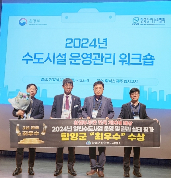 함양군은 환경부가 주관하는 ‘2024년도 일반수도사업자 운영·관리 실태점검 평가’에서 3년 연속 최우수 지자체로 선정됐다고 밝혔다.