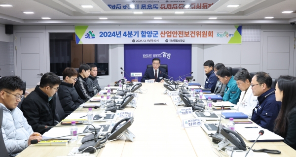 [아시아월드뉴스] 함양군은 12월 17일 오전, 군청 재난종합상황실에서 사업장의 안전 및 보건에 관한 사항을 심의하기 위한 ‘2024년 4분기 산업안전보건위원회’ 회의를 개최했다.