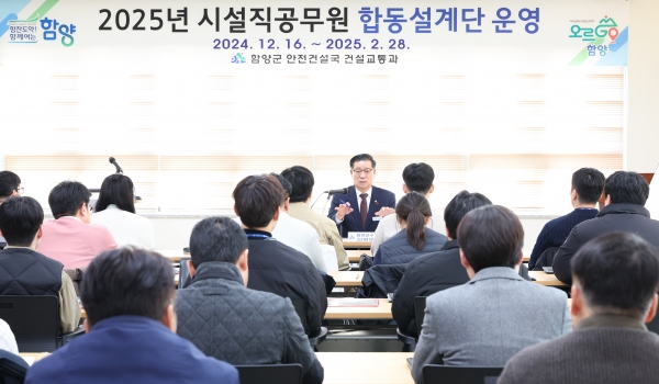 진병영 군수는 “합동설계단 운영으로 공무원들의 실무 역량과 청렴 의식을 높이고 책임감 있는 건설 행정을 추진하겠다”며 “소규모 건설사업 조기 발주를 통해 지역 경제 활성화에 기여할 수 있도록 최선을 다하겠다”고 말했다.