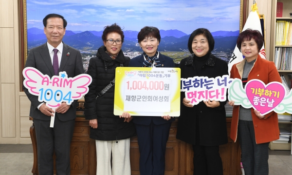 지난 17일 재향군인회 여성회는 기탁식에 참석해 아림1004 후원금으로 100만 4,000원을 기탁했다.
