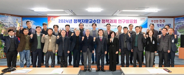 [아시아월드뉴스] 진주시는 지난 17일 시청 문화강좌실에서 조규일 시장과 정책자문교수단, 공무원 등 90여명이 참석한 가운데 정책과제 연구발표회를 가졌다.