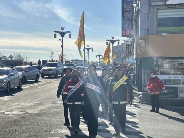 참가자들은 삼문동 야외공연장에서 시작해 밀양아리랑 시장을 지나 관아까지 거리 행진을 하며 산불 예방 홍보에 나서 겨울철 산불 위험에 대한 경각심을 높이고 시민들의 동참을 독려했다.