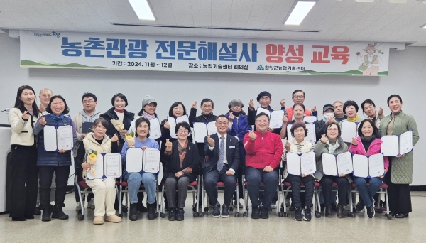[아시아월드뉴스] 함양군은 지난 12월 17일 농업기술센터 1층 회의실에서 농촌관광 전문해설사 양성 교육 수료식을 개최했다고 밝혔다.