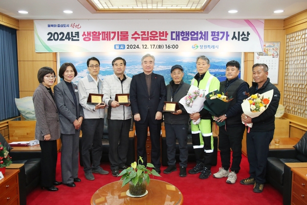[아시아월드뉴스] 창원특례시는 17일 시청 접견실에서 2024년 생활폐기물 수집·운반 대행 우수 업체 시상식을 가졌다.