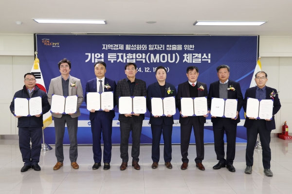 안경원 부시장은 “국내외 어려운 경제여건 속에서도 과감한 투자를 결정해 준 기업에 감사드리며 이번 협약이 위축된 우리 시 제조업에 활력을 불어넣기를 바란다”며 “앞으로도 지역경제 활성화와 양질의 일자리 창출을 최우선 과제로 삼아 선도기업 유치에 최선을 다하겠다”고 밝혔다.