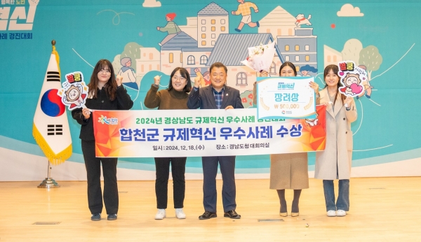 [아시아월드뉴스] 합천군은 경남도가 주관한 ‘2024년 경상남도 규제혁신 우수사례 경진대회’에서 장려상을 수상했다고 19일 밝혔다.