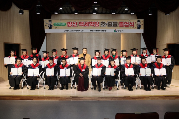 이에 양산시는 2010년부터 백세학당 사업을 추진해 올해 초등 39명, 중등 27명이 졸업했고 누적 학습자 3,240명, 누적 졸업생 324명으로 꾸준히 많은 학력 인정 졸업생을 배출하고 있다.