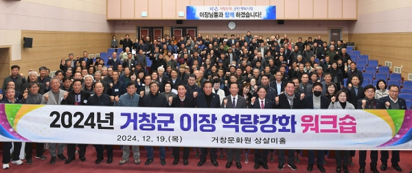 [아시아월드뉴스] 거창군은 지난 19일 거창문화원 상살미홀에서 구인모 거창군수, 이재운 거창군의회 의장, 박주언 도의원, 군의원, 마을이장, 담당 공무원 등 280여명이 참석한 가운데 ‘2024년 거창군 이장 역량강화 워크숍’을 개최했다고 밝혔다.