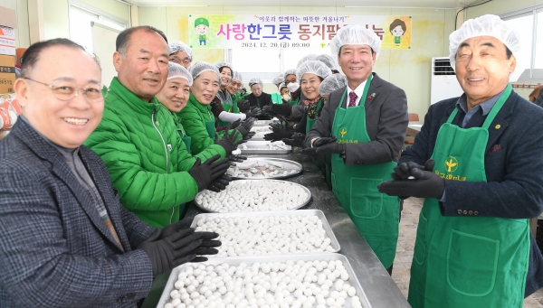 이날 행사에서 새마을회원들은 직접 팥을 삶고 새알을 빚어 팥죽을 만들어 포장한 뒤 읍면의 홀몸노인 등 150세대에 전달함으로써 한파로 인한 추위 속에서 외로운 삶을 살고 계시는 이웃과 함께 훈훈한 가족의 사랑을 나누었다.