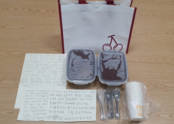 편지에는 “추모공원에 자주 가는 데 갈때마다 너무 예뻐서 감탄해요”, “추모공원이 만들어져서 거창의 역사를 잘 알게 되어 감사해요”, “추운 날씨에 저희가 드린 팥죽 먹고 건강하시고 힘내세요” 등 따뜻한 마음과 감사의 글귀가 담겨 있었다.
