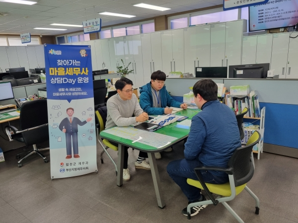 [아시아월드뉴스] 합천군은 23일 쌍백면사무소에서 '2024년 찾아가는 마을 세무사 상담 DAY'를 운영하며 군민들에게 국세와 지방세 무료 상담 서비스를 제공했다고 밝혔다.