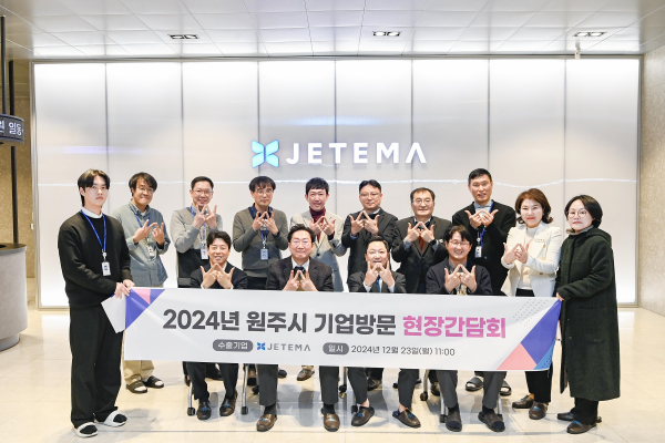 이날 원강수 시장은 회사 소개 및 기업 현황 안내를 듣고 생산시설 및 제품 생산 과정을 탐방하며 기업의 당면 현안에 대해 논의했으며 ㈜제테마의 발전과 원주시 수출 성장에 기여한 직원들을 격려했다.