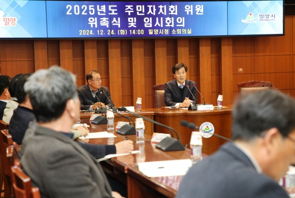 [아시아월드뉴스] 밀양시는 24일 시청 소회의실에서 ‘2025년 주민자치회 위원 위촉식 및 임시회의’를 개최했다고 밝혔다.