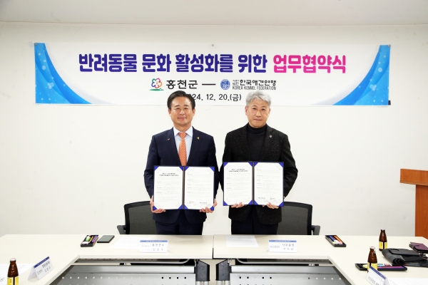 [아시아월드뉴스] 홍천군은 한국애견연맹과 12월 20일 홍천농촌문화터미널에서 반려동물 문화 활성화를 위한 업무협약을 체결했다고 밝혔다.