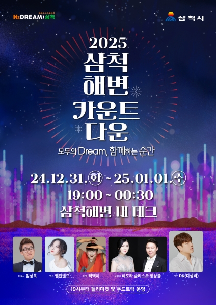 또한, 새해가 오기 전날인 12월 31일 저녁 7시부터 삼척해변을 찾은 시민과 관광객들에게 다양한 즐길 거리를 제공하기 위해 ‘2025 삼척해변 카운트다운’ 행사를 진행한다.