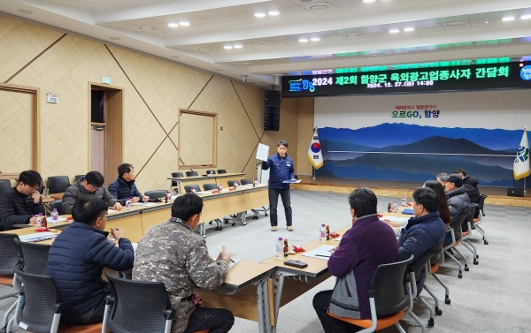 [아시아월드뉴스] 함양군은 옥외광고물 분야 업무 협력 강화를 위해 군청 담당 부서 및 경상남도옥외광고협회 함양군지부 등과 함께 지난 12월 27일 본관 대회의실에서 간담회를 가졌다고 밝혔다.