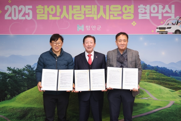 [아시아월드뉴스] 함안군은 30일 함안택시, 통일택시와 함께 2025년 ‘함안사랑택시 운영 지원사업’ 협약식을 가졌다.