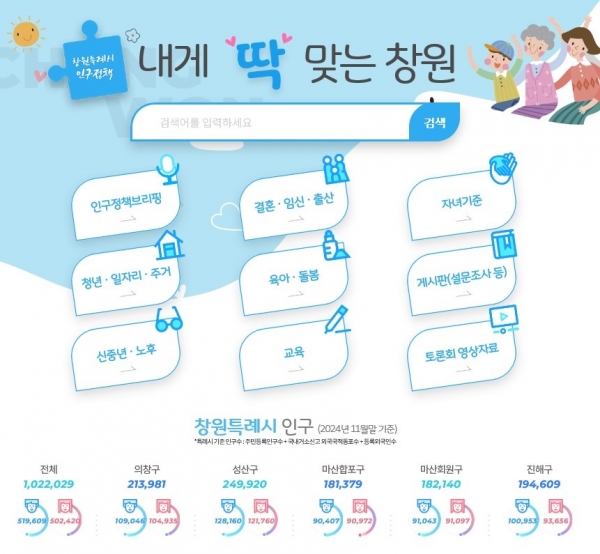 [아시아월드뉴스] 창원특례시는 각종 창원특례시 인구정책과 외국인주민 정책에 대한 정보를 제공하는 창원시 인구정책 홈페이지를 새롭게 개편했다고 밝혔다.