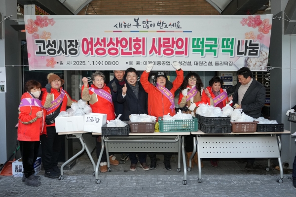 [아시아월드뉴스] 고성시장 여성상인회은 1월 1일 고성시장 수협 앞에서 새해맞이 떡국떡 나눔 행사를 열었다.