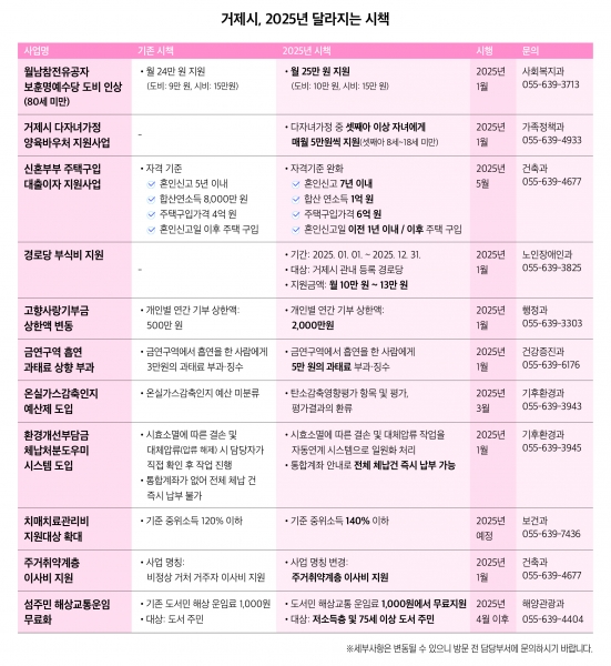 [아시아월드뉴스] 거제시는 2025년 다양한 분야에서 새로운 시책을 추진해 시민 편의를 높인다.