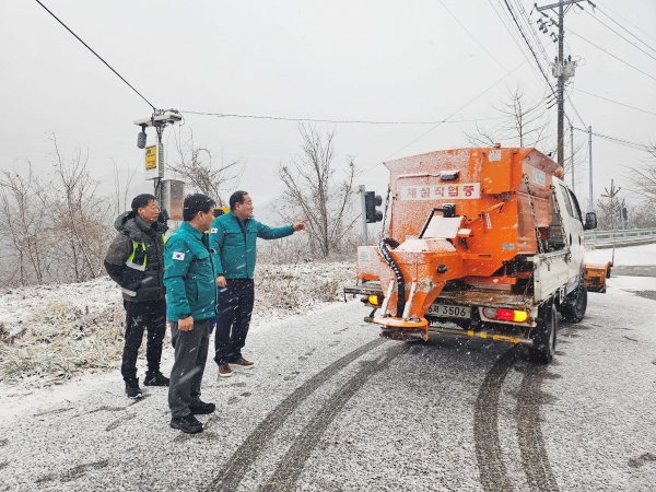 백 부군수는 이날 겨울철 강설로 인한 도로 통행 불편을 최소화하기 위해 제설 자재 확보 상황, 위험 구간 관리 현황, 대응 계획 등을 면밀하게 살폈다.