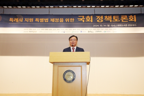 ‘특례시 지원 특별법’은 특례시 특례를 확보하기 위한 제도적 받침으로 법안의 제정을 위해 2022년부터 대도시연구원협의회와 논의해 법안을 작성하고 2023년, 2024년 국회에서 토론회를 개최하는 등 국회에 발의되도록 노력을 기울여왔다.