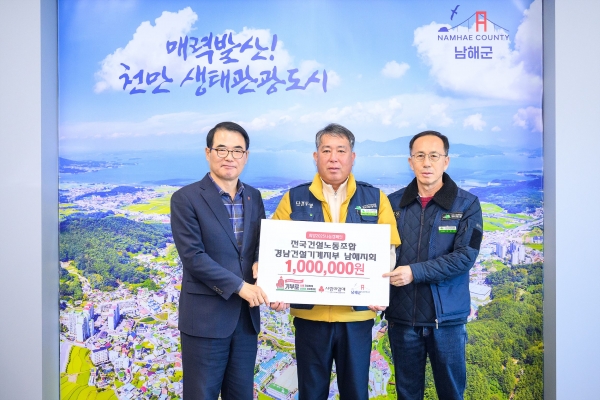 또한 2018년·2019년에 이어 올해 100만원을 기탁한 전국건설노동조합경남건설기계지부는 “조합원들의 정성이 담긴 성금이 관내 어려운 지역사회 이웃들에게 조금이나마 도움이 되고자 기탁을 하게 됐다”고 말했다.