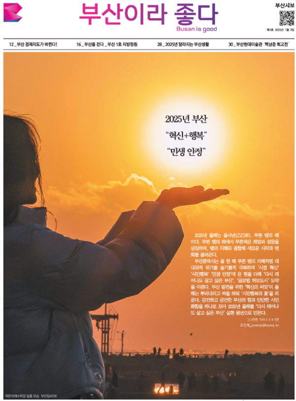 [아시아월드뉴스] 시정 소식지 부산시보 ‘부산이라 좋다’ 가 2025년 새해, 시민 곁으로 한 걸음 더 다가간다 부산시는 시민들에게 더욱 생동감 있고 알찬 소식을 전달하기 위해 부산시보 ‘부산이라 좋다’의 발행 체제 혁신, 시민 공감·참여 콘텐츠 확대 등 대대적인 개편에 나섰다고 밝혔다.