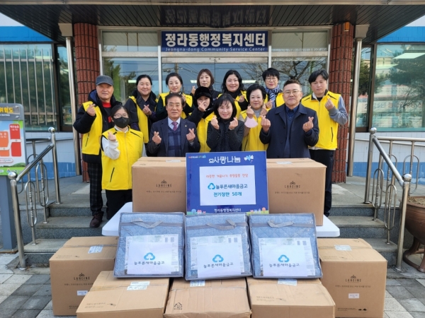 [아시아월드뉴스] 1월 14일 늘푸른새마을금고에서 취약계층의 따뜻한 겨울나기를 위해 정라동행정복지센터에 기탁한 전기요 50개를 정라동지역사회보장협의체 및 정라동 응급처치전문의용소방대가 정라동 관내 취약계층에게 전달했다.