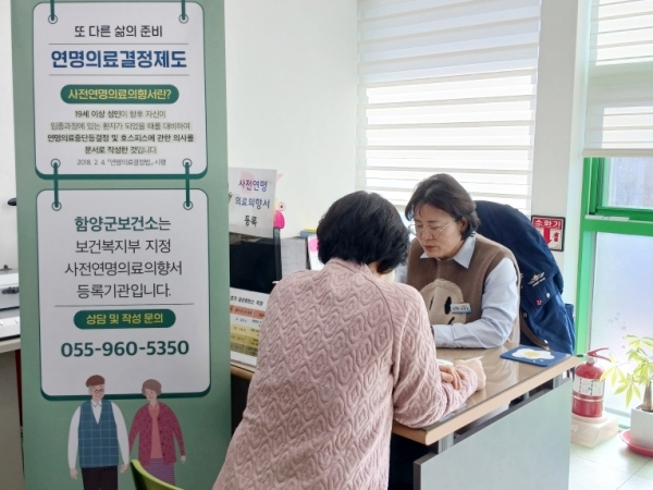 함양군 보건소는 2024년 6월부터 등록기관으로 지정되어 현재까지 총 269명이 사전연명의료의향서를 등록한 것으로 집계됐다.
