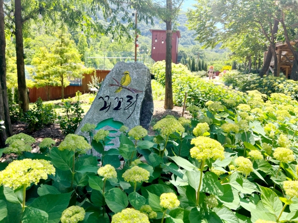 추운 겨울이 지나 봄이 되면 수선화의 노란 물결과 질매재에 만발하는 벚꽃을 만날 수 있고 여름에는 가지각색의 수국이 숲 정원 곳곳에서 피어나 무더위를 잊게 할 만큼 아름다운 경관을 자아낸다.