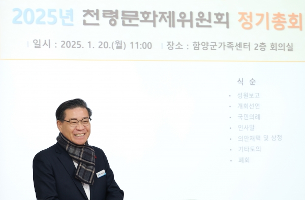 [아시아월드뉴스] 함양 천령문화제위원회는 1월 20일 진병영 함양군수, 이창구 위원장, 축제위원 등 50여명이 참석한 가운데 ‘2025년 천령문화제위원회 정기총회’를 개최했다.