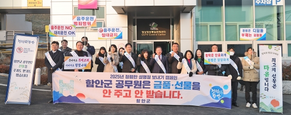 [아시아월드뉴스] 함안군은 지난 20일부터 22일까지 3일간 공직자의 청렴의식을 제고하고 청렴한 조직문화 확산으로 ‘더 청렴한 함안’을 만들기 위한 ‘설 명절 선물 안주고 안받기’ 캠페인을 실시했다.