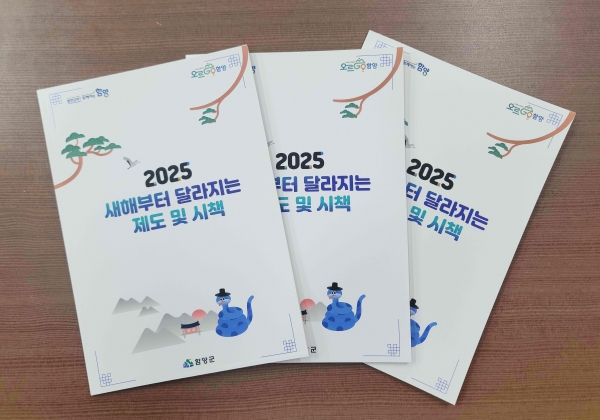 [아시아월드뉴스] 함양군은 2025년 을사년을 맞아 기존과 달라지는 제도 및 시책을 총망라한 ‘2025년 새해부터 달라지는 제도 및 시책’ 책자를 제작·배포했다고 밝혔다.