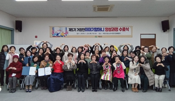 [아시아월드뉴스] 거창군은 지난 23일 청소년수련관 참배움터에서 ‘거창한 이야기 할머니’ 5기 수료식을 개최하고 미래세대의 인성교육을 위해 노력하는 시니어 인재 양성에 힘쓰고 있다.