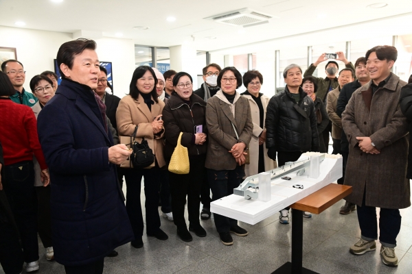 이날 조규일 진주시장은 설계공모 당선작 전시공간을 둘러보고 “도시미관과 어울리는 창의적인 디자인을 적용한 조형물인 육교가 설치되면 진주시의 랜드마크가 될 것”이라며 "주민불편 해소를 위해 설계 시 주민 건의사항을 적극 검토하고 안전한 구조설계가 이루어지도록 해 달라”고 관계자에게 당부했다.
