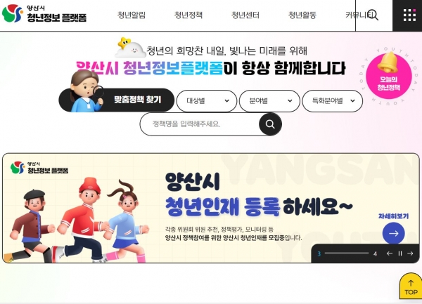 양산시 관계자는 “이번 플랫폼 개통으로 단순 정보제공을 넘어 청년들의 소통공간으로 자리잡아, 지역 청년들을 위한 정보 제공과 정책 참여 활성화에 크게 이바지할 것으로 기대한다”고 밝혔다.