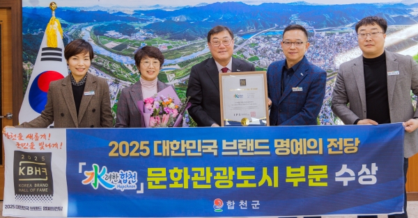 [아시아월드뉴스] 합천군은 대표 브랜드 ‘수려한합천’ 이 ‘2025 대한민국 브랜드 명예의전당’ 문화관광도시 부문에서 수상했다고 23일 밝혔다.