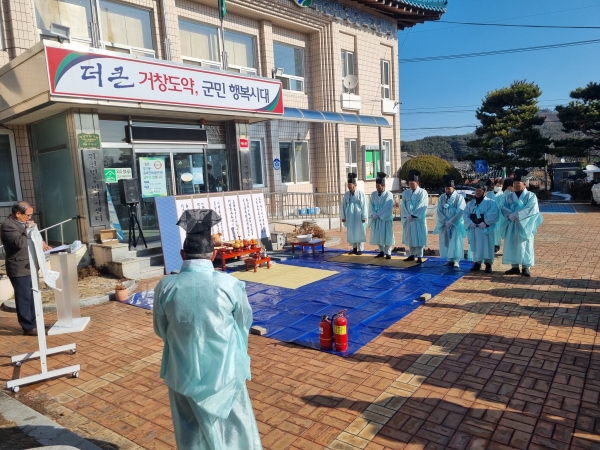 새해 인사회에 앞서 위천면사무소 앞마당에서는 면민안녕기원제와 산불예방 캠페인이 진행되어 위천면의 풍년과 안녕을 기원하는 뜻깊은 시간을 가졌다.
