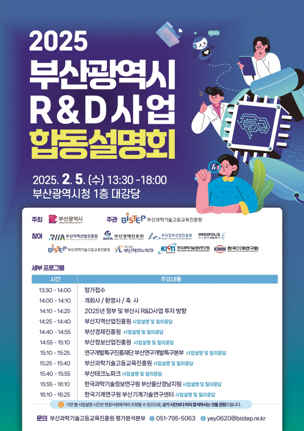 [아시아월드뉴스] 부산시는 내일 오후 2시 시청 대강당에서 ‘2025년 연구개발사업 합동설명회’를 개최한다고 밝혔다.