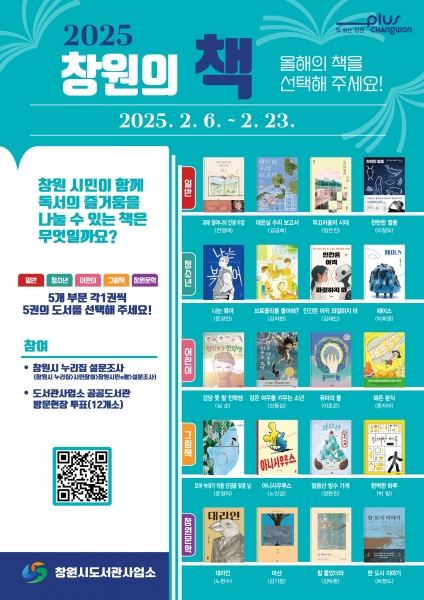 최종 ‘2025 창원의 책’은 이번 시민선호도 조사 결과와 2월 27일 제2차 ‘2025 창원의 책’ 선정위원회의 토의를 거쳐 부문별 1권씩 총 5권이 선정된다.