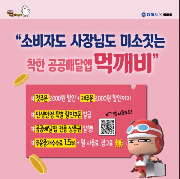 또 7일 오전 11시 먹깨비에서만 사용 가능한 김해공공배달앱 전용 상품권을 발행한다.