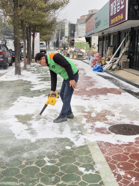 지난 6~7일 내린 눈과 함께 강추위로 미끄럼 사고가 우려되는 상황속에서 이른 아침부터 단원을 긴급 소집해, 이면도로 마을안길, 보행로 등 제설작업을 신속하게 진행해 안전사고 예방에 집중했다.