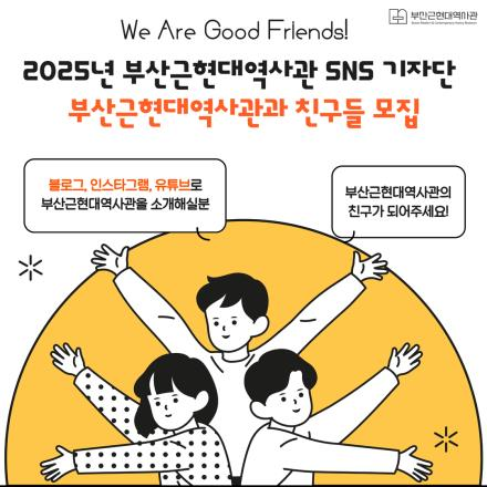 [아시아월드뉴스] 부산근현대역사관은 오는 17일부터 22일까지 역사관의 매력을 널리 전파할 사회관계망서비스 기자단 '2025년 부산근현대역사관과 친구들'을 모집한다고 밝혔다.