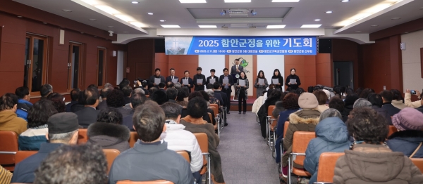[아시아월드뉴스] 함안군은 지난 11일 오후 6시 30분, 군청 3층 대회의실에서 조근제 함안군수를 비롯해 기독교 관계자, 주민 등 200여명이 참석한 가운데 ‘2025년 함안군정 기도회’를 개최했다.